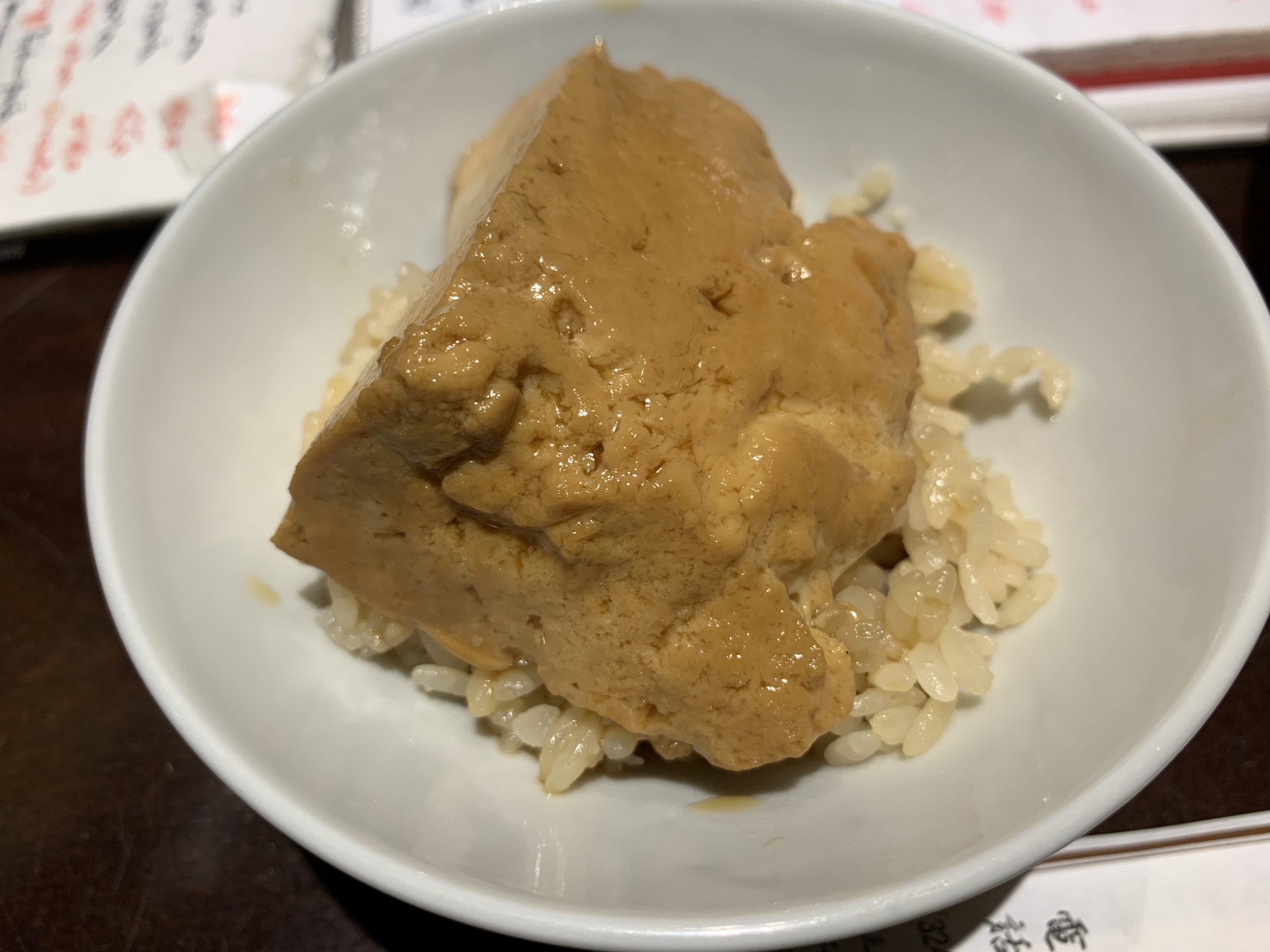 最後點的就是とうめし,とうめし就是「上面放著豆腐的白飯」。一開始還想說「豆腐蓋飯會好吃嗎???」實際上超級美味的啊啊啊。